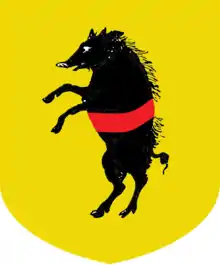 Les armes des Scroffa sont d'or, à un sanglier rampant de sable, sanglé de gueules.
