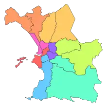 | Nombre de subdivisions | 8 secteurs 16 arrondissements (1987) |
