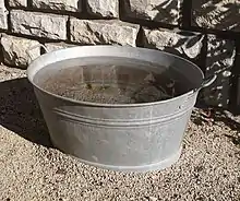 Une seille ovale en métal, remplie d'eau