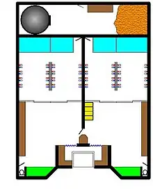 Le mur qui sépare les hommes et les femmes mesure généralement 2 m de haut, tandis que le plafond est à 3 m ou 4 m, et se termine par de grandes fenêtres en haut. Dans des cas rares, le mur de séparation comporte également un petit trou, qui servait à se passer le savon entre membres d'une famille. De nos jours, ce trou est devenu inutile car la plupart des familles peuvent se payer un savon par personne.