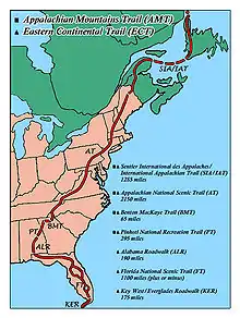 Le sentier des Appalaches, le Continental Divide Trail et le Pacific Crest Trail, les trois grands sentiers de randonnée de longue distance américains[5],[6], sont connus sous le nom informel de « triple couronne de la randonnée » (Triple Crown of Hiking).