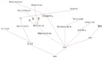 Ces divergences ont été telles qu'au début de l'ère chrétienne plusieurs érudits se lancèrent dans des révisions du texte de la Septante afin d'obtenir une version grecque plus conforme aux textes hébreux alors en cours de fixation[8]. Les trois révisions les plus célèbres sont celles de Symmaque, d'Aquila et de Théodotion.