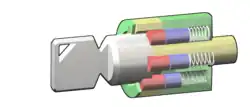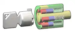 Cette serrure est fréquemment recommandée par les assurances pour la sécurisation de biens du fait de sa bonne résistance au crochetage. On trouve ce genre de serrures principalement sur les alarmes, les anti-vols de vélo, de moto ou de gaz, dans les arcades, les machines à boissons, les anti-vol pour ordinateurs portables ou les boîtes aux lettres sécurisées.