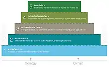 Une distinction est souvent faite entre les enjeux liés aux cycles de l'eau[67] et sylvicoles[68], à l'agriculture[69], ceux plus largement liés à biodiversité, et enfin ceux plus aménitaires, procurés par les paysages, autour de la notion de fonction écosystémique dont les vertus unificatrices et de mise en cohérence ont été identifiées dès les années 1980[70] (une première classification a été faite par le Millenium Ecosystem Assessment[71].).