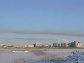 ![]() Vue aérienne oblique de Severodvinsk, avec (en haut à gauche) la Baie de la Dvina |