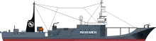 Sa longueur est de 70,55 m, pour une vitesse maximum de 18,8 nœuds[1],[2].