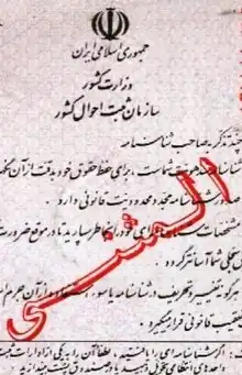 Le shenasnameh en Iran est un document d'identité sous forme de livret établi pour les citoyens iraniens à la naissance[1]. Il fut pendant longtemps l'unique pièce d'identité du pays. Les Iraniens possèdent depuis 2015, en plus du shenasnameh, une carte d'identité.