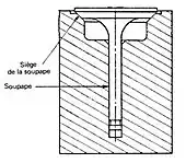 Un siège de soupape de moteur à combustion interne est la pièce sur laquelle les soupapes d'admission ou d'échappement viennent en contact afin de fermer la chambre de combustion. Les sièges de soupapes sont des pièces critiques des moteurs thermiques. En effet, si elles sont mal positionnées, orientées ou mal usinées, des fuites au niveau des soupapes se produiront et réduiront la pression dans le cylindre, et donc son rendement, sa puissance, son niveau d'émissions polluantes ainsi que sa durée de vie.
