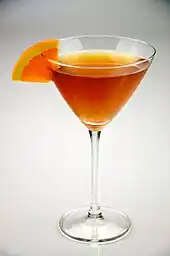 Frappez les ingrédients avec de la glace dans un shaker. Filtrez le tout dans un verre à cocktail réfrigéré. Décorez avec un bord de verre sucré et une tranche ou un zeste d'orange ou de citron[14].