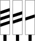 ![]() | RF4 : Mirlitons : Sur le principe des Mirlitons de la SNCF ; un premier mirliton (1 barre) est placé à 100 mètres du signal, précédé par un ou deux mirlitons (2 ou 3 barres) espacés de 75 mètres chacun. Un format carré existe pour les implantations en espace exigu. |