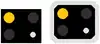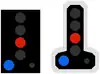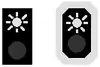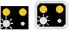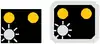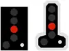 ![]() | RF7 : Tableau-repère des signaux fixes lumineux commandant l'arrêt lorsqu'ils sont indûment éteints : Le repère diffère de selon s'il s'agit d'un signal fixe principal (à gauche) ou d'un signal fixe de voie barrée ou combinant les deux (à droite). |