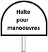 ![]() | SFHM : Signal fixe "Halte pour manœuvres" : Signal équivalent au précédent, mais pour les trains en marche de manœuvre. |
