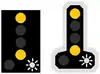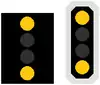 ![]() | SMAv : Signal mobile avancé : Annonce d'un signal mobile d'arrêt. La nuit, un feu jaune est utilisé. |