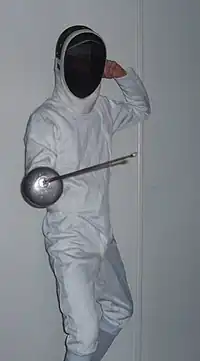 C'est la position de garde à l'épée et au fleuret depuis le XIXe siècle (auparavant, la position de garde était la tierce, qui demeure aujourd'hui la garde au sabre).