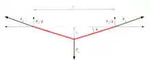 Le phénomène de mécanique statique de triangulation est à prendre en compte lors de l'installation des ancrages car il peut engendrer une augmentation importante des forces de traction dans les élingues. Cette augmentation est liée à l'angle formé par les brins de l'élingue utilisés pour l'accroche de la slackline ou du système de tension. Ces forces peuvent atteindre deux fois la tension soumise à la slackline pour un angle de 75,5°, et donc devenir critique en fonction des élingues utilisées (voir schéma et démonstration). Notons que la représentation schématique ci-contre suggère que ce phénomène n'existe que pour un ancrage sur deux points, mais le même phénomène existe pour un ancrage autour d'un arbre : seul l'angle formé par les brins de l'élingue détermine le rapport entre la tension dans la slackline et les forces en jeu dans l'élingue.