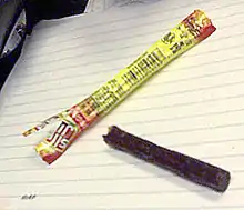 Comme indiqué sur leur article, ConAgra définit Slim Jim comme un «bâton de viande» qui ressemble plus à de la charcuterie, comme le salami et le pepperoni, qui utilise des bactéries et du sucre pour produire de l'acide lactique, abaissant de ce fait le pH de la saucisse vers environ 5 et raffermissant ainsi la viande[6].[pas clair]