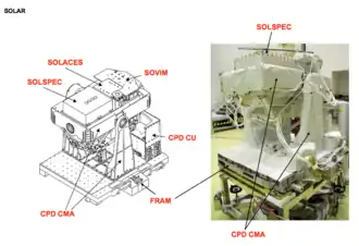 - SOLSPEC (Solar Spectral Irradiance Measurements) mesure le rayonnement du Soleil dans le spectre 180 nm – 3 000 nm ;