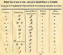 | Lettres hébraïques en solitreo et en écriture carrée | ||||||||