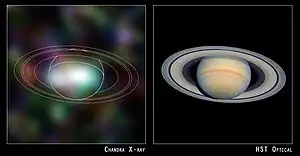 Le spectre de rayons X de Saturne est similaire à celui des rayons X provenant du Soleil, cela peut s'expliquer grâce à la réflexion des rayons X solaires par l'atmosphère de Saturne. L'image optique est beaucoup plus lumineuse, et montre les anneaux des Saturnes, qui ne sont pas détectés aux rayons X.