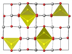 La structure des spinelles consiste en un empilement compact cubique à faces centrées d'oxygène. Les cations divalents occupent les sites à coordination tétraédrique et les cations trivalents les sites à coordination octaédrique.