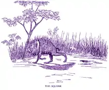 Le premier écrit faisant mention des « squonks » provient d’un livre de William T. Cox intitulé Créatures effrayantes des sous-bois, plus autres bêtes du désert et de la montagne (en) (1910). Le récit de Cox est repris par Jorge Luis Borges dans son Livre des êtres imaginaires (1969).