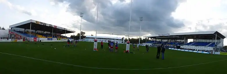 Le site s'étend sur 560 m2 de zones couvertes pour accueillir les partenaires, les joueurs, les membres de l'association et le grand public. Il dispose par ailleurs de deux points de vente de nourriture et de boisson, d'un espace de 350 m2 dédié aux vestiaires des équipes et des arbitres, ainsi que d'une boutique de 30 m2 à l'entrée du stade. À la reprise de la saison 2013 de Fédérale 1, le stade est réaménagé quasi intégralement, les deux tribunes sont étendues, ce qui porte le nombre de places assises à 4 868 places contre 2 554 places avant l'extension. En plus de l'extension, il y a la création de nouveaux espaces réceptifs (1 000 m²), de loges privatives pour les partenaires, multiplication des points buvette tout autour du stade, création d'un restaurant ouvert à tous dans l'enceinte, installation d'un éclairage homologué PRO D2 et Rencontres Internationales permettant de jouer les matchs en nocturne; Installation d'un écran géant de 35m² dans l'en-but sud. En 2015, une nouvelle tribune est construite dans l'en-but nord et elle est inaugurée à la fin de l'année 2015. Elle compte 2 250 places, ce qui augmente la capacité à 7 500 places dont 7 100 places assises.