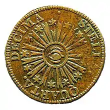 La devise apparaît sur le revers de la pièce et encercle une couronne de treize petites étoiles représentant les États-Unis d'alors[réf. nécessaire] avec une grande étoile centrale contenant un œil en son centre. La devise exprime la volonté de l’État, alors indépendant, de rejoindre les États-Unis en tant que quatorzième État.