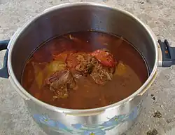 La recette de base[2],[3] se prépare avec du veau maigre (coupé en dés), de l'huile d'olive, de l'oignon, du jus de tomate, du vinaigre, du vin rouge et du laurier.
