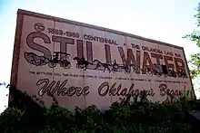 À la veille de Noël 1890, la législature territoriale de l'Oklahoma a adopté un acte attestant que les concessions de terre se trouvaient sur le site de Stillwater. En 1894, l’Oklahoma Agricultural and Mechanical College inaugura son premier bâtiment, Assembly Building, qui deviendra connu sous le nom de Old Central[3]. Entre 1889 et la transformation du territoire de l'Oklahoma en État, Stillwater s'est agrandi. Lors de l'obtention de ce statut en 1907, le centre-ville de Stillwater regroupait plus de 50 bâtiments dont plusieurs banques, églises, épiceries, hôtels et d'autres grands magasins.