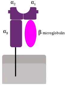 - le soi d'un individu est défini par des récepteurs du complexe majeur d'histocompatibilité (CMH, nommé HLA chez l'humain) présents sur la membrane de ses cellules, associés aux fragments peptidiques qu'ils présentent. Il existe deux types de molécule de CMH : le CMH de type I qui est présent chez presque toutes les cellules de l'organisme et le CMH de type II qui est retrouvé principalement chez les cellules dendritiques, les macrophages et les lymphocytes B ;