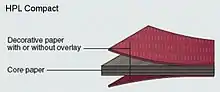 Le stratifié (en anglais, high pressure laminate ou HPL) est un panneau composite utilisé pour le revêtement de sol et de meuble. Il se compose de papier kraft (de 10 à 20 feuilles superposées) et d'une feuille de papier décoratif de surface, le tout étant imprégné de résine phénol-formaldéhyde pour les couches centrales et de résine mélamine-formaldéhyde pour la couche de surface. La couche de mélamine est appelée overlay. A ne pas confondre avec le stratifié qui est le résultat de la stratification (par exemple à base de résine époxy et fibre de verre).