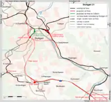 Stuttgart 21 est un projet ferroviaire et urbain allemand visant à complètement réagencer et moderniser le nœud ferroviaire de Stuttgart. Avec la nouvelle ligne Wendlingen–Ulm, le projet est aussi officiellement appelé projet ferroviaire Stuttgart-Ulm (Bahnprojekt Stuttgart–Ulm)[1].
