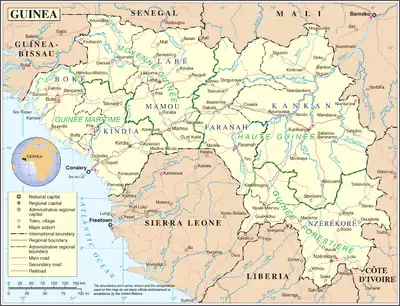 | Gouvernorat de Conakry | GN-C | ![]() Les 8 régions administratives de la Guinée |