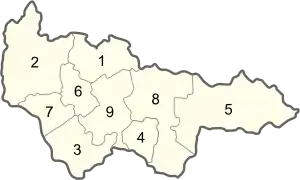 Certains raïony comprenaient également des villes, des communes urbaines (посёлки городского типа) ou des selsoviets (сельсоветы) sous la juridiction d'autres subdivisions (raïony ou villes) ; on comptait 2 villes, 24 établissements de type urbain et 69 selsoviets de ce type.