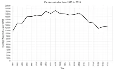 Le phénomène des suicides de paysans en Inde, souvent du fait de leur incapacité à rembourser les prêts qu'ils avaient contractés, a attiré l'attention depuis les années 1990[1], même si le taux de suicide des paysans est en réalité plus faible que celui de l’ensemble de la population.