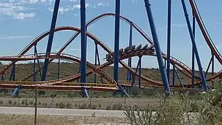 En sortant de la gare, on effectue un demi tour qui nous place sur le lift. En haut, et c'est unique chez les B&M, on enchaine pré-lift et descente droite. Ensuite on passe un loop, un immelmann, un Zero-g roll, un cobra roll, un camelback, des interlocked corkscrew et une hélix.