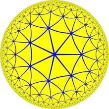 Un pavage hyperbolique représentatif est donné, et montré comme une projection du disque de Poincaré.