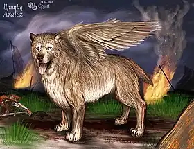 L'Aralez est une créature de la mythologie arménienne ressemblant à un chien ailé.