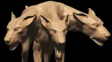 Parmi les chiens de la mythologie grecque, le gardien des Enfers, Cerbère, est décrit comme un être monstrueux à trois têtes et à queue de serpent, capable de cracher du feu, et empêchant ceux qui passent le Styx de s'enfuir. Il a parfois cinquante têtes[12] ou même cent[13].