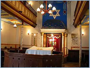 La synagogue possédait à l'origine des vitraux représentant l'Étoile de David. Maintenant, les fenêtres sont en verre transparent avec une Étoile de David peinte.