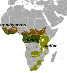 - Syncerus caffer brachyceros[8] (Gray, 1837)