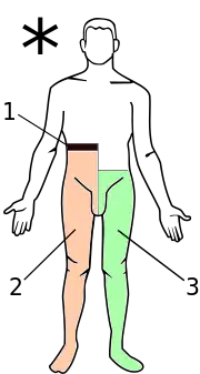 - une hypoesthésie thermo-algésique (insensibilité tactile, douloureuse, et thermique) controlatérale sous la lésion.