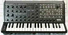 On peut citer également le Synthi VCS-3 (1969) de EMS (employé par exemple par Karlheinz Stockhausen) ou l'un des précurseurs que fut le Synket conçu par Paolo Ketoff (ingénieur italien qui travaillait pour RCA, il choisit le nom Synket pour « Synthesizer Ketoff ») dont la conception commença dès 1962 et s'acheva fin 1964 (le premier modèle fut livré début 1965 pour les concerts de John Eaton). Le Synket était accompagné de trois petits claviers de 2 octaves, chacun relié à un VCO et un VCF et dont les touches pouvaient être préréglées de façon convenable pour jouer de la musique microtonale[1],[2].