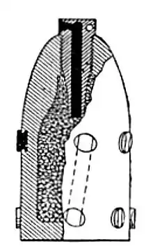 Le chargement se faisait par la gueule (comme les mortiers modernes), et les obus étaient conçus pour exploser à deux gammes de distance. L'obus lui-même, une invention du capitaine François Tamisier (1847) était de forme ovoïde, avec à sa surface des cupules permettant de guider le projectile le long des rayures de l'âme. Les canons de l'époque, comme l’obusier de 12, furent dotés d'un canon rayé pour intégrer cette innovation[5]. Le système d'armes comportait des canons rayés :