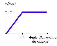 - Dans le cas où l’ouverture du robinet est supérieure à « lim ». Le débit à donc une valeur constante (« max ») qui est indépendante de l’ouverture.