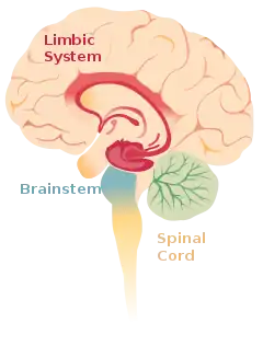 - de noyaux limbiques, appartenant au prosencéphale et au tronc cérébral ;