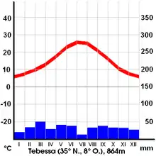 - « Climat Tébessa : Pluviométrie et Température moyenne à Tébessa, diagramme ombrothermique pour Tébessa - Climate-Data.org », sur fr.climate-data.org (consulté le ).