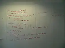 Tableau blanc de discussion sur l'API de Wikimedia aux Wikimedia hacking days 2006.