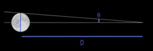 En astronomie, le diamètre apparent d'un astre est au départ la seule donnée dont on dispose. Sa distance et sa dimension s'obtiennent par calcul.