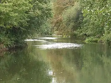 La Lizonne, ruisseau descendant de Moutardon, se jette sur la rive gauche de la Charente au pied d'Aizie.